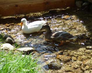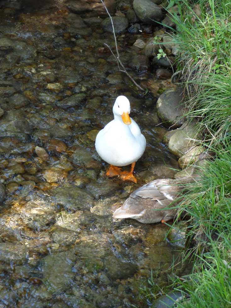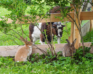 Unsere Zwergziegen sind freche Kletterkünstler und freuen sich über freundliche Besucher. Im Stall warten kuschelige Hasen auf sanfte Hände, und unsere Enten planschen vergnügt im nahegelegenen Bach.